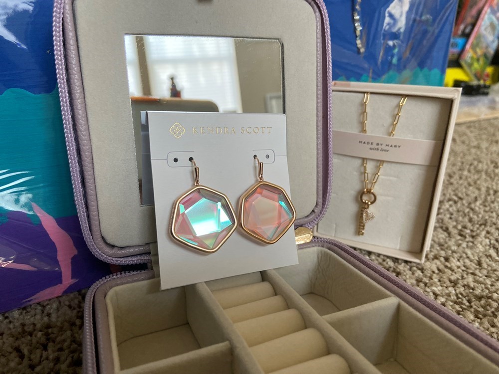 Go home with these beautiful Kendra Scott earrings and a travel jewelry box!