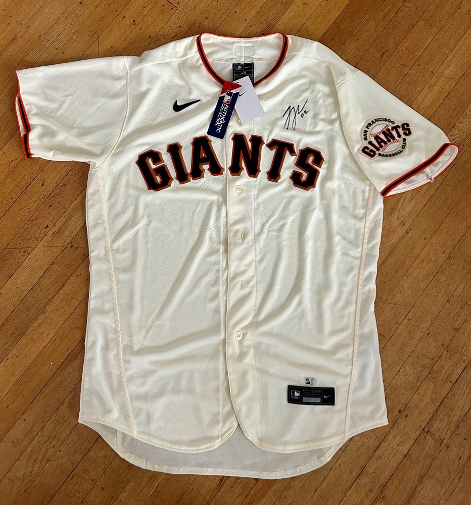A jersey autographed by San Francisco Giants pitcher Logan Webb, Nike size 48 with tags on it. (MLB Authentic Collection) Signed about "Giants" on the left side of the jersey.