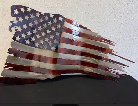 Custom metal artwork made by Kyle Clayton Tattered Flag Design Donated by Jim and Kyle Clayton at B&C Pump