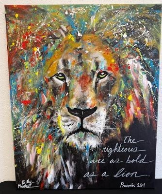 The righteous are as bold as a lion. Proverbs 28:1 Splash Abstract with acrylic paints, on a 24 x 30 in stretched canvas Original by Billy Montes