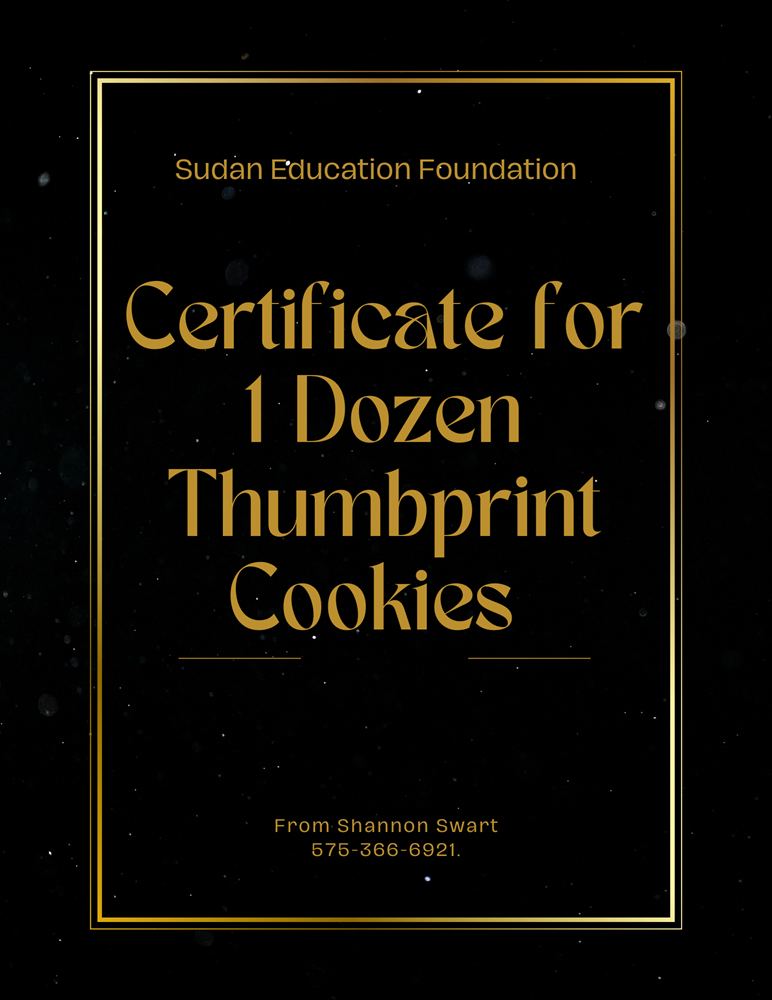Gift Certificate for One Dozen of Shannon Swart's delicious thumbprint cookies.