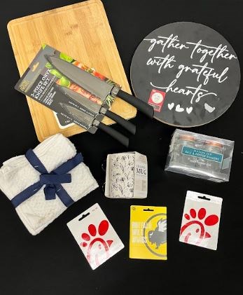 Assorted kitchen goodies and gift cards! Donated by Saul Centeno from Centeno Farms