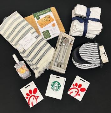 Gift basket from C+J Irrigation full of kitchen items and gift cards! Donated by C+J Irrigation