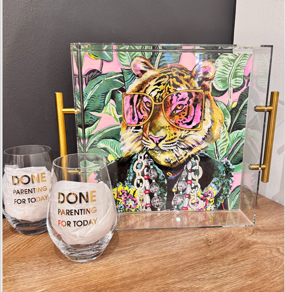 Hostess Gift Basket. tray and glasses