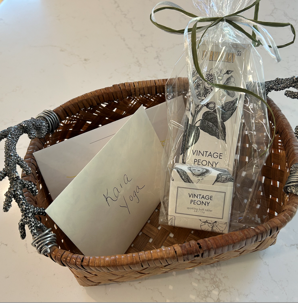 $75 gift card to a nail salon , hand lotions, and $100 to Kaia yoga studio.